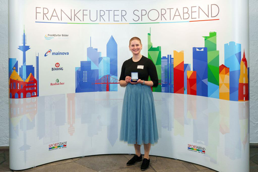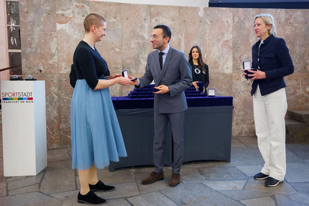 Die Auszeichnungen wurden nach Sportarten alphabetisch vergeben. Bereits im ersten Ehrungsblock erhielt sie ihre Medaille sowie einen Ehren-Pin persönlich von Oberbürgermeister Mike Josef. Insgesamt war die Veranstaltung in drei Ehrungsblöcke unterteilt, die durch Redebeiträge sowie eine Kata-Vorführung ergänzt wurden.